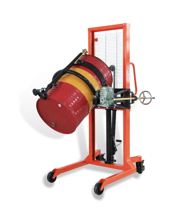 Бочкокантователь для работы с металлическими и пластиковыми бочками грузоподъемностью 450 кг и высотой подъема до 1520 мм.