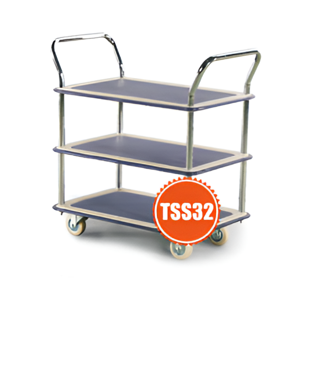 Платформенные тележки TSS11, TSS22, TSS32 идеально подойдут для использования на небольших подсобных хозяйствах, магазинах, мастерских. Тележки имеют 1-3 яруса и удобны для транспортировки большого количества небольших предметов.