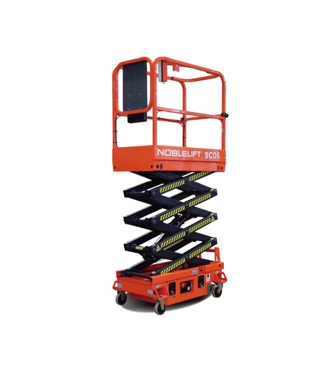 Серия сверхкомпактных подъемников ножничного типа SC06E с DC-двигателем хода, предназначены для использования в помещениях, в условиях ограниченного пространства, например, в лифтах.